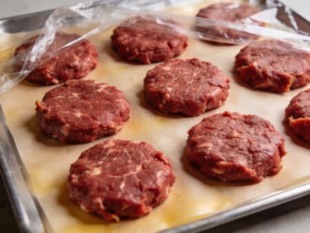Divide the mince into 8 equal portions and loosely form into balls. Do not overwork the meat. Cover and chill in the fridge for 20–30 minutes.